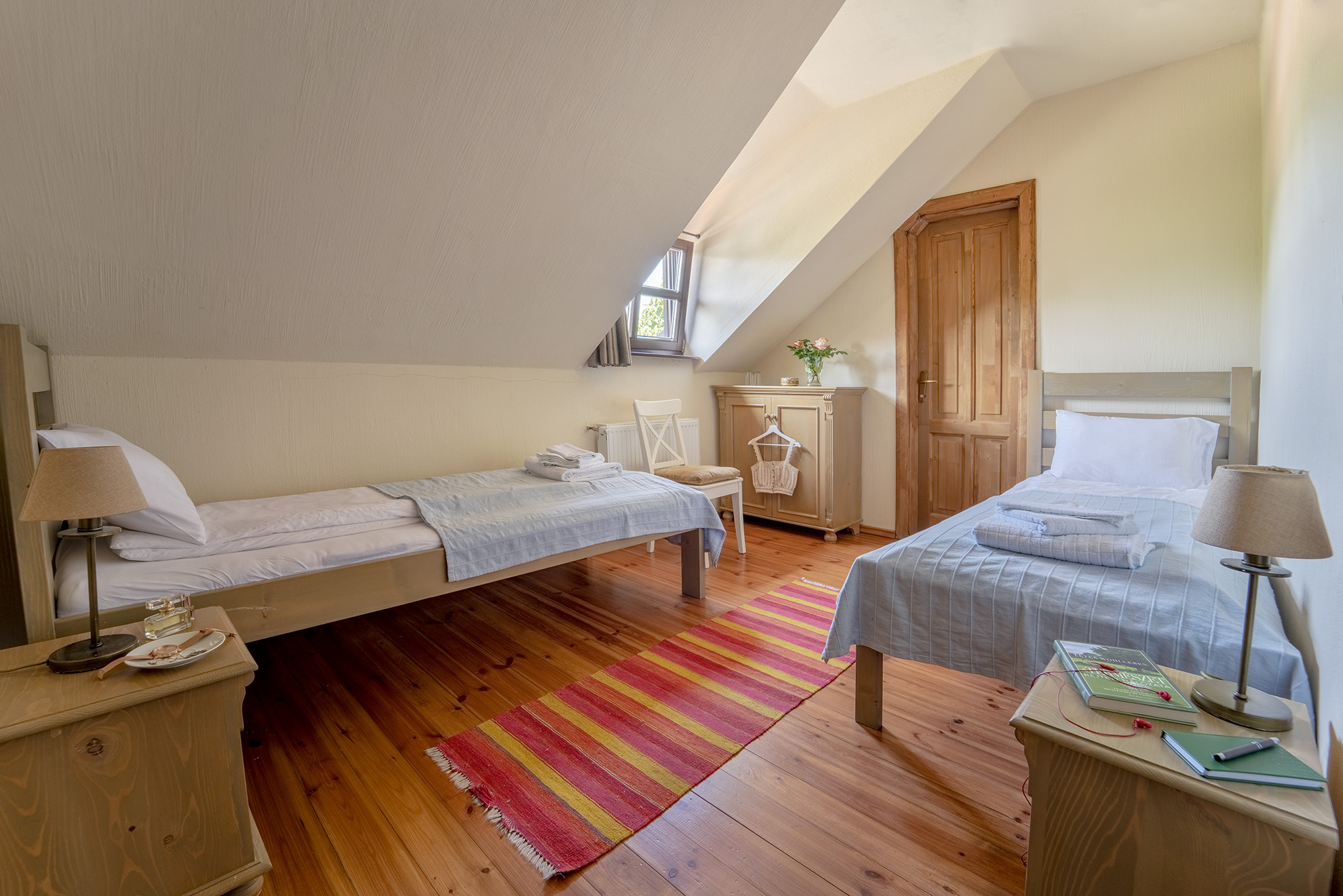 A 25 hektáros birtok új épülete, a Csűr, a hagyományos vidéki stílust ötvözi a modern kényelemmel. Az épület öt hangulatos szobával, tágas ebédlővel és nagy, kert felé néző napozóterasszal rendelkezik, így csoportok számára is ideális választás. A földszinten található az ebédlő, valamint a mini wellnessz részleg, amely szaunával, masszázzsal és egy külső, melegített dézsával nyújt teljes kikapcsolódást.
